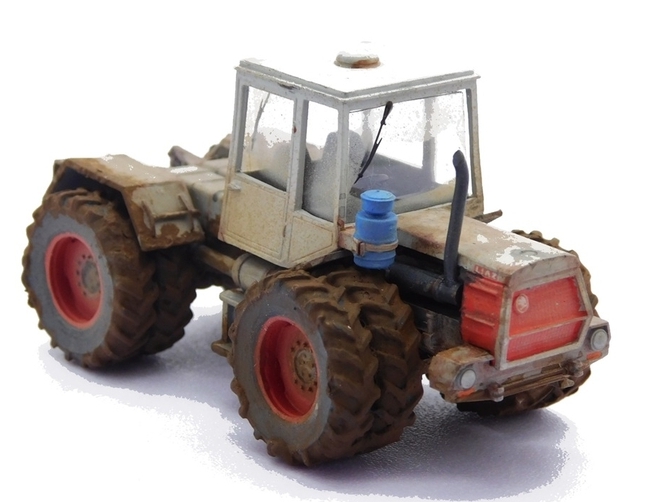 Detailně zpracovaný hotový model Škoda LIAZ ŠT‑180 v měřítku 1:87 (H0). Varianta se dvojitou montáží všech kol (duály) a červenými disky zvýrazňuje robustní charakter stroje. Model je patinovaný – s věrohodnými stopami prachu, bláta a provozního opotřebení. Resinové provedení s ostrými detaily kabiny, rámu, motorového prostoru a kol. Vhodné pro zemědělská a stavební dioramata, dvory JZD i kolejiště éry ČSSR. Dodáváno kompletně sestavené a nabarvené, připravené k okamžitému použití ve scéně.